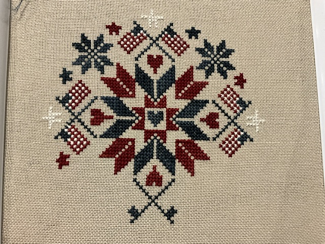 The rest of the week was spent working on my planned wips, except for throwing in one of the patriotic stitches.