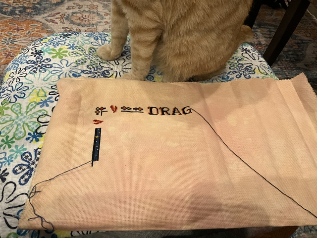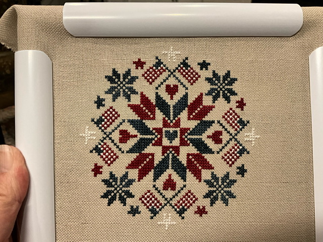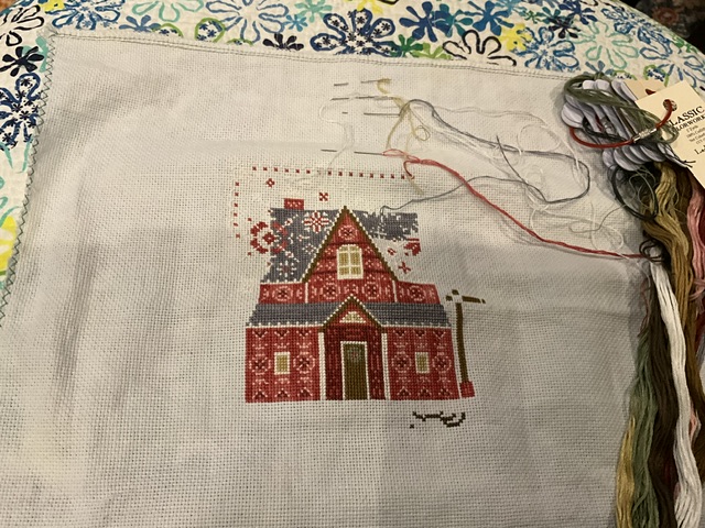 I couldn’t resist starting the Patriotic Quaker. I used the same floss and fabric as 4th of July Round. I hadn’t put it on my start list because I planned to save it for next year. It just kept calling my name.