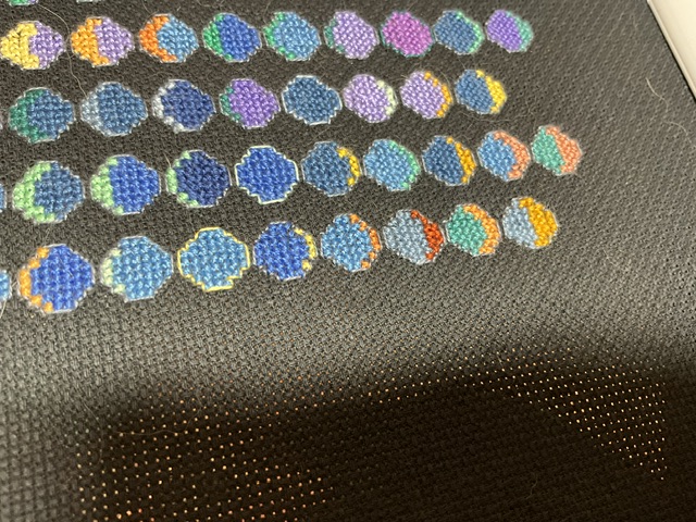 I am stitching on 14 ct chalkboard black aida with the included Classic Colorworks floss. I originally was in the FQS club of the month when this was originally released.