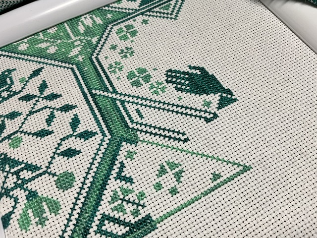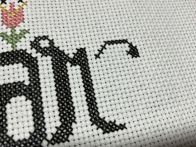 I pulled this out after putting it away last couple of months. I worked on it last night and after stitching so much fall (which I love), it made my heart happy to work on these flowers most of the night. I even stitched the “r” and started the “c”. I got a nice start on this month’s goal of 2000 stitches by finishing 488 last night.