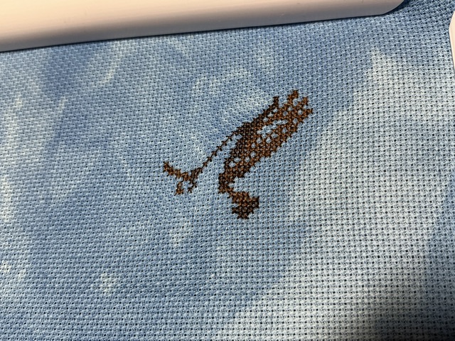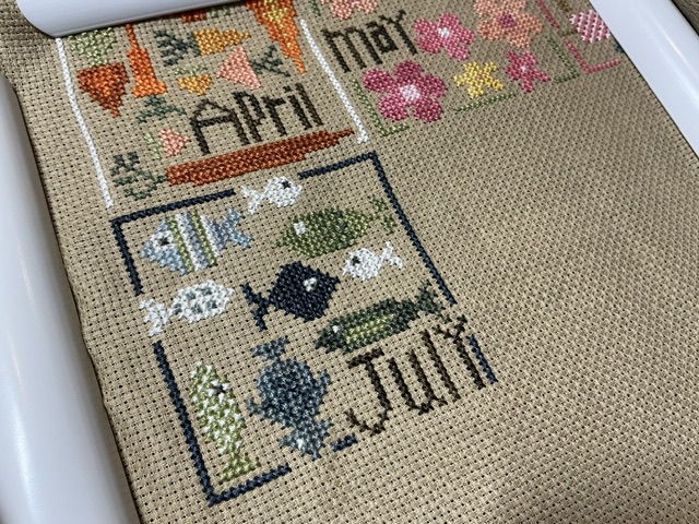 I didn’t think to take a picture of the whole banner this time. Fishes seem like a dad thing that would be with June not July. 😂. Even the colors seem to lean towards June but it is July! All done. Fun little guys to stitch.