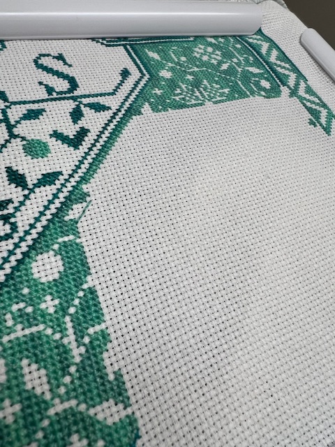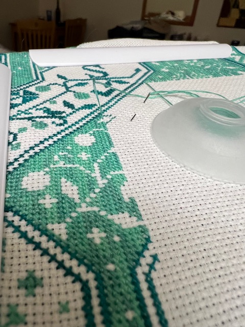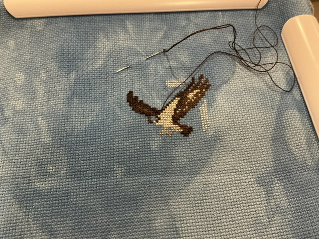 Only had time for a few 100 stitches. Almost finished the osprey. I might have done more if I hadn’t forgot that it was one strand with a 28 needle since I am using 20 ct aida. I stitched a little before realizing my oops. Unstitched and then restitched after searching for my #28 needles.