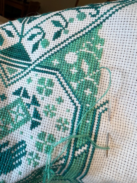 I am on the last page of this 2021 SAL. Wow! That means one more motif and the reverse large border with a few triangle motifs. Still have more stitches to do to reach my WIPGO goal for this month.