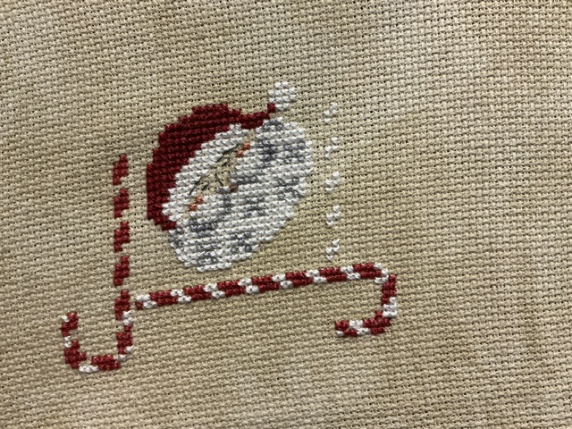 I was feeling some Christmas spirit so I picked up this small stitch. I am very excited that I only have a little left now. Can’t wait to work on it next week! I love his face and the candy canes are pretty relaxing to stitch.