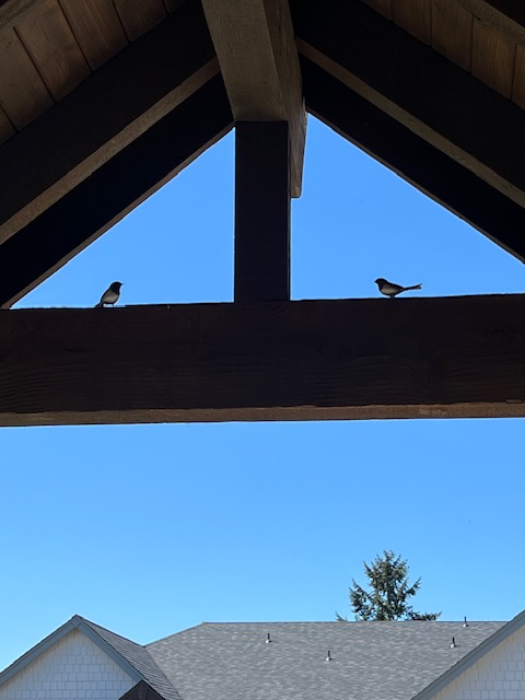 Went for a walk in the neighborhood today. First thing that happened was being greeted when I walked out the front door by two birds. It took me a minute to figure out they were chattering at me because I was standing by their nest.