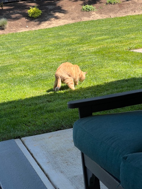 Gorgeous sunny day here in the Pacific Northwest. I was outside enjoying some of that sunshine with the cats who were cracking me up.