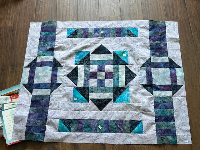 While I was in my sewing room multiple days this week, I was distracted with rounding up cross stitch projects, kitting XS projects, finding XS fabric & floss. I did do some sewing though. I mostly worked on completing my Are You Game? Cotton Cuts mystery quilt. I did a large and a small that time and this is the small. I finished assembling and adding the sides to the quilt. Just need to assemble the top and bottom pieces before adding all the borders. Getting close to be done with this 2021 project.