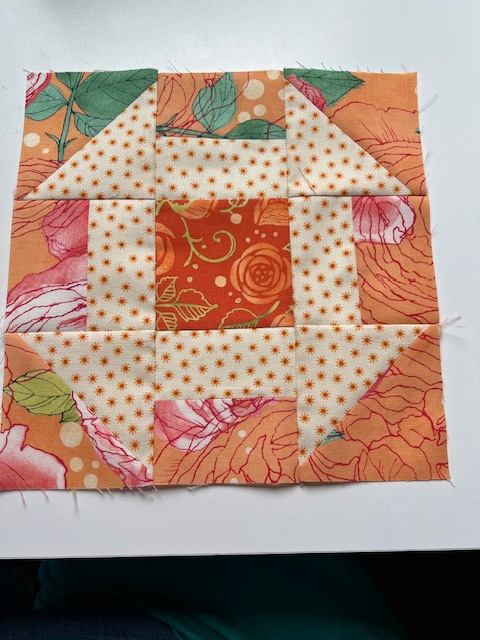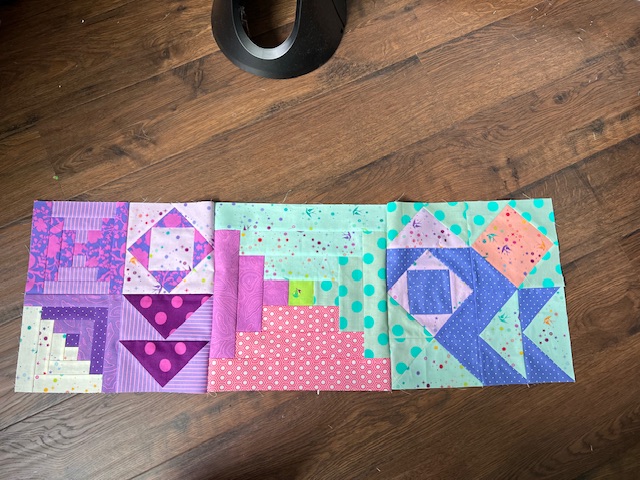 I used this block also as leaders and enders while assembling Dragonfruit. I finished the final two blocks this week. I am use Rosie’s layer cake paper and Peacock Colorstory layer cake to make the units. Next week I will need to start the next couple of blocks with the foundation paper.