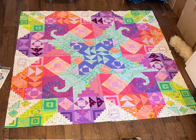 - Thrilled to assemble my four quadrants of Dragonfruit into the center of the quilt