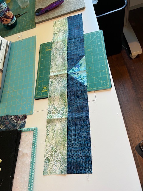 - Took a moment to begin building the next side pieced borders for Sparkle & Shine 2021 Mystery Quilt by Cotton Cuts