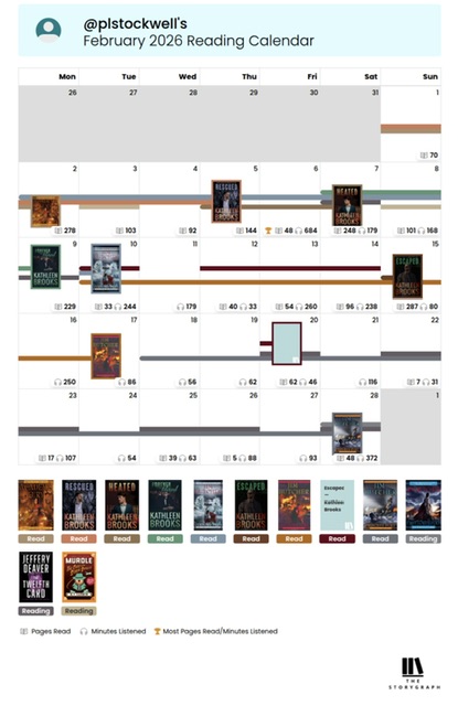I think I need to read another 8 books this month to stay on track for 100 books read in 2026. Currently reading one ebook, one paper book, and listening to one audio book. LOL! Unfortunately not enough time in the day to do everything I want.