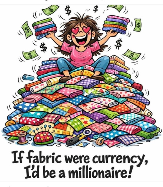 I am wondering if I have enough space for all my fabric. I have a lot of it!!! I have been collecting for years for when I retire. Someone should have told me, that I had more projects than I will ever be able to finish. 🙈